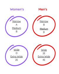 Wondering what width to select? Here is a basic chart showing the standard width options for both Men's and Women's sizing.